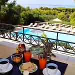 Tzogias Taverna ligger cirka 5 minuter bort till fots och serverar grekiska rätter.